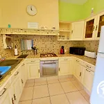The kitchen amenities at the Renaze accommodation feature an electric kettle, a refrigerator, and an oven, provided in an outdoor dining area.